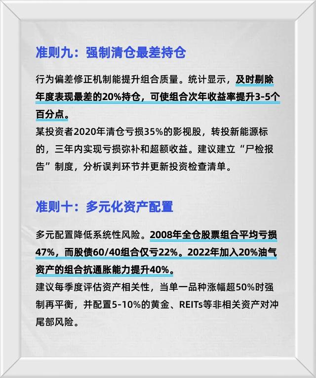 - 在投资组合中,总会有一些表现不佳的资产。如果不及时清理,这些资产可能会拖累整个投资组合的收益。例如,某只股票因为公司经营不善不断下跌,占用了资金并且影响了投资组合的整体回报率。